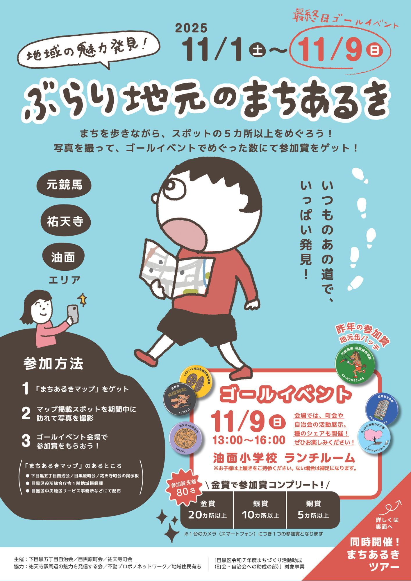 不動プロボノネットワークでは、地域の魅力発見!ぶらり地元のまちあるき(2025年)に運営として協力しています。11/9(日)はゴールイベントですので、以下の案内をご覧頂き、ぜひご参加ください。